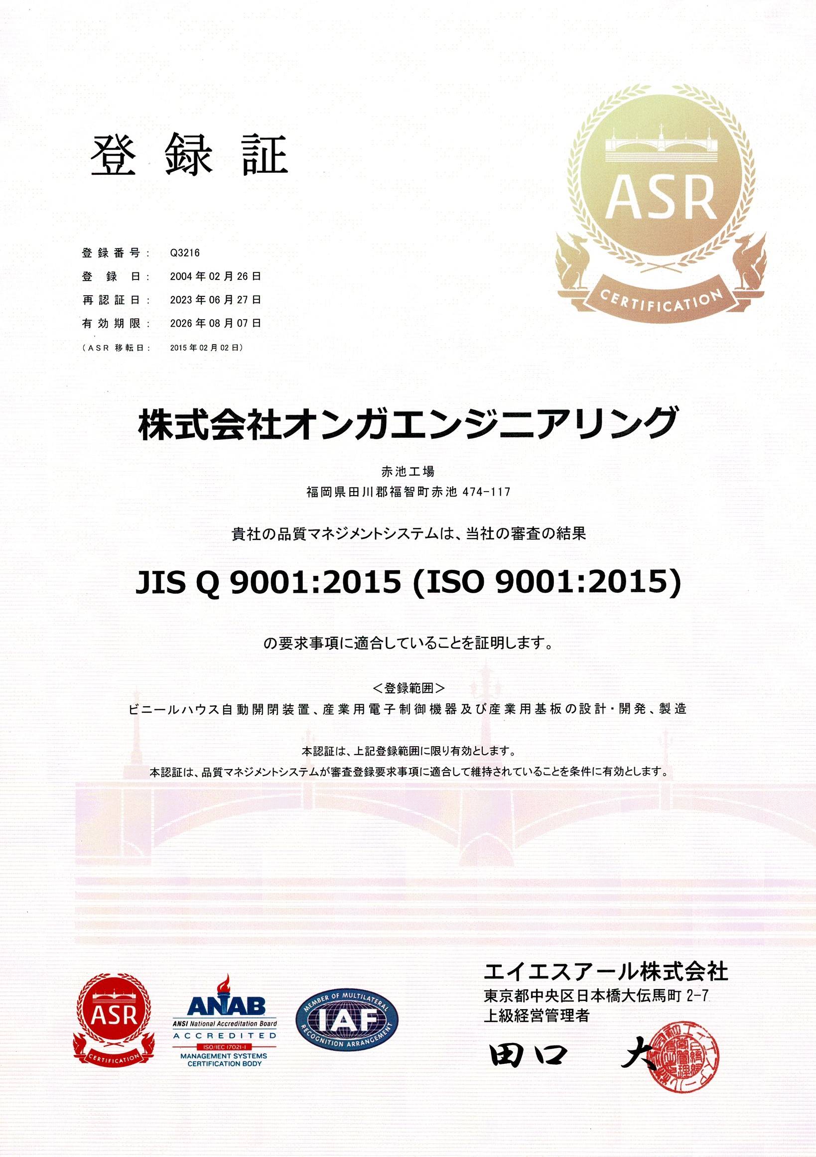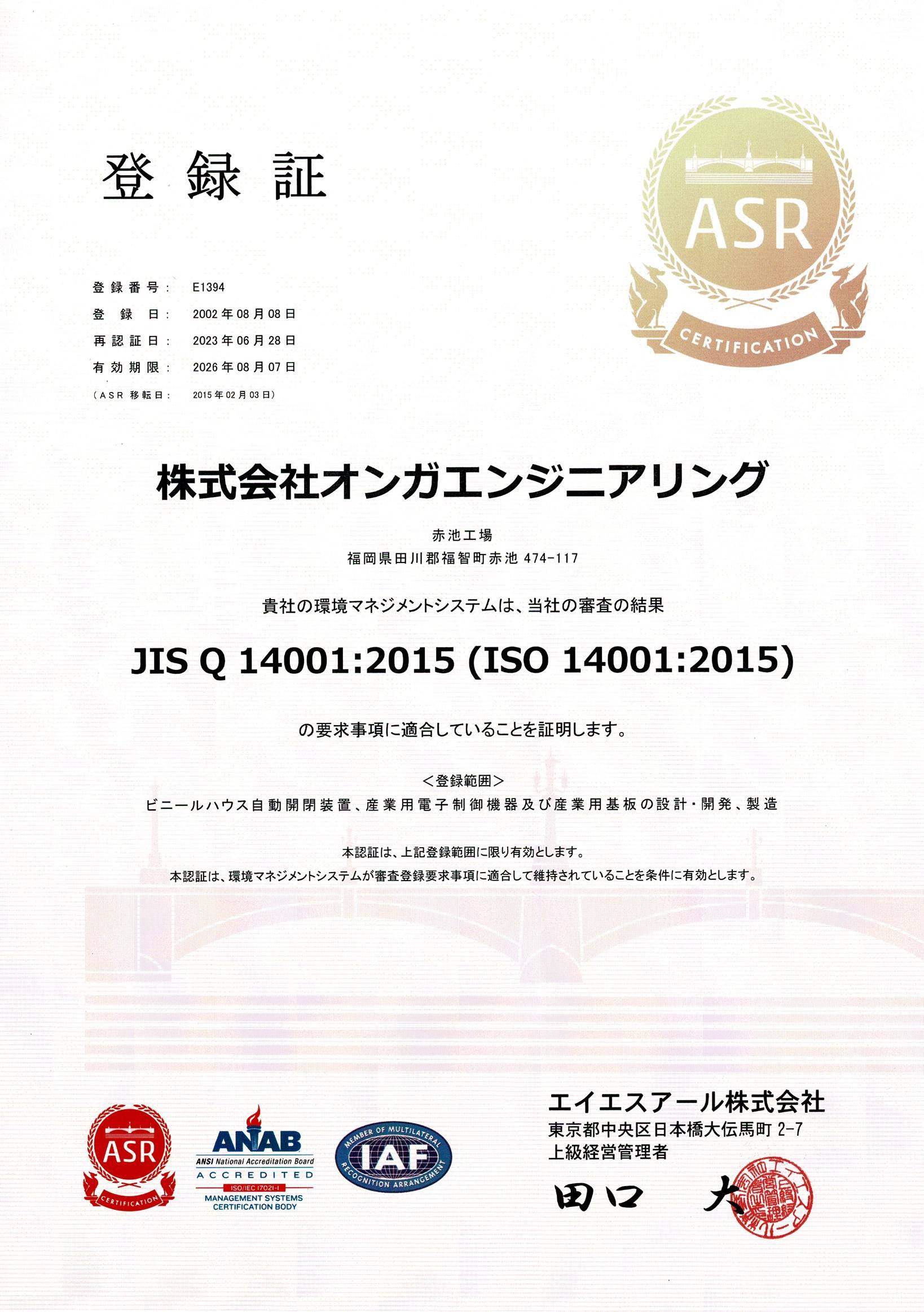 - 事業活動の全てに於いて、環境保全ならびに顧客要求事項への適合と統合マネジメントシステムの有効性について継続的な改善を推進する。